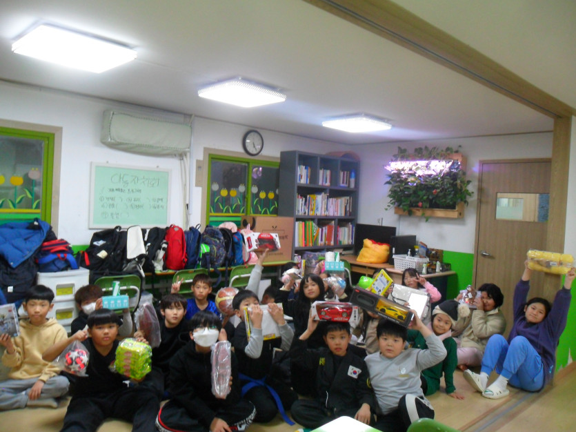 그동안 열심히 모아온 달란트로 각자 원하는 제품을 구입하였습니다.
